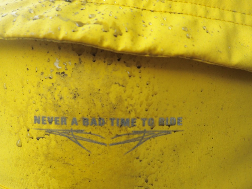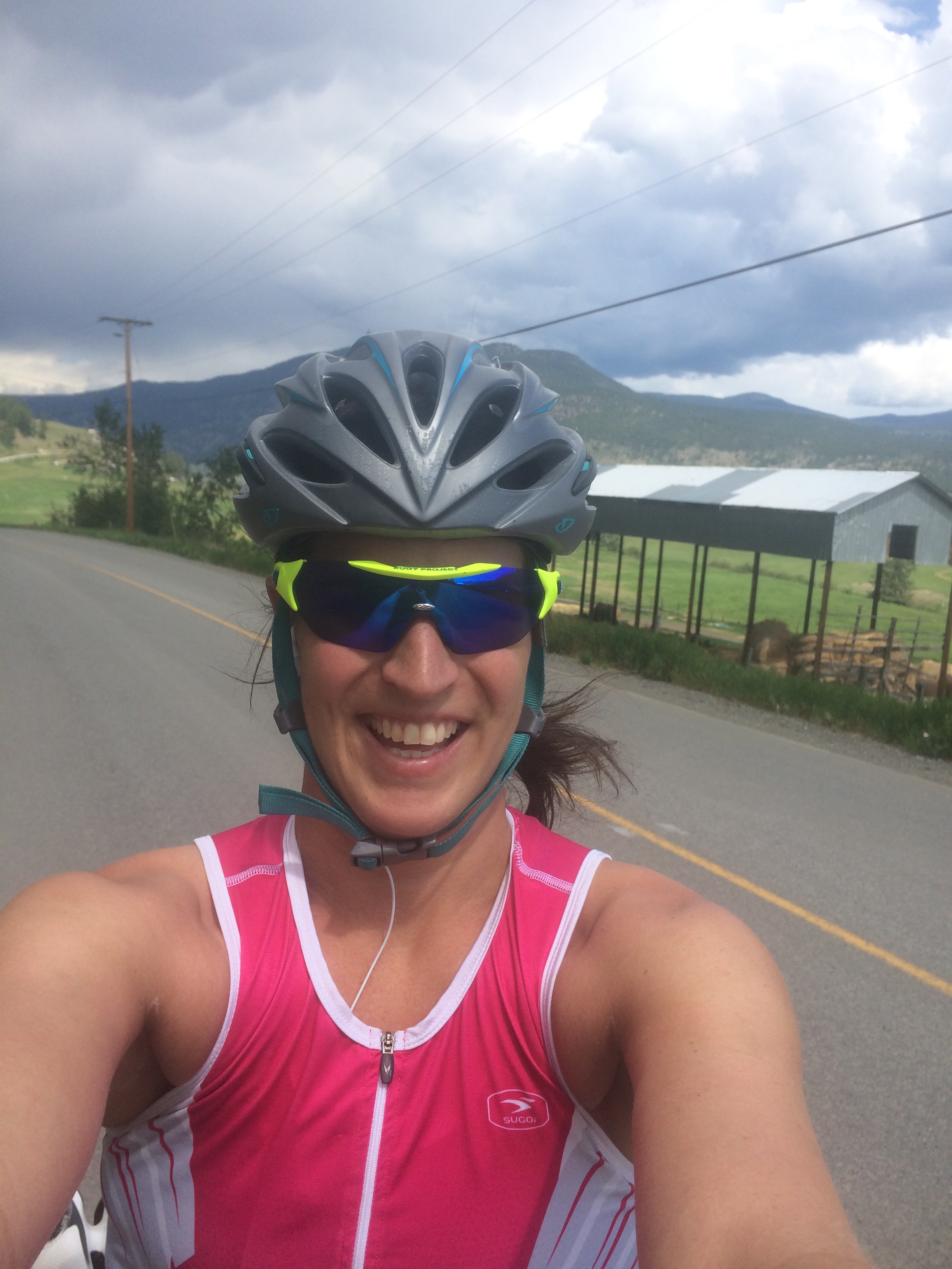 With my shoes on, I threw on my sunglasses and grabbed for my helmet. Yet, to my frantic shock it would not fit onto my head. Here is an example of where experience is a good teacher. If you’re going to try a new hair style the night before the race, make sure your helmet still fits properly. My thick braided hair was preventing the helmet from fitting on my head. I pride myself on being fast in transition – playing with my hair was not conducive to being fast. As I tried to slam it onto my head, my glasses became dislodged and hung around my mouth. I made the quick decision to hurl the sunglasses at the ground, and go with however the helmet was going to sit. Then, as I pulled my bike off the rack, my brake lever got stuck in the spokes of the bike next to me. I thought, that’s it, I’m never getting out of here. I heaved on the bike, trying not to destroy my neighbour’s bike or mine, and finally freedom. As I got on the bike with my helmet half way down my forehead and almost down to my eyes, I took two deep breaths and tried to shake the jitters.